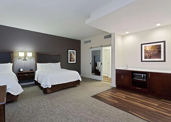 Certaines chambres d'Hampton Inn & Suites - Richmond - Downtown, Va, qui sont énormes, donnent sur les gratte-ciel et comprennent un coin salon et une kitchenette. Dans ces chambres non-fumeur vous pourrez profiter d'une TV à écran plat avec des chaînes satellite ainsi que d'une cafetière/théière.